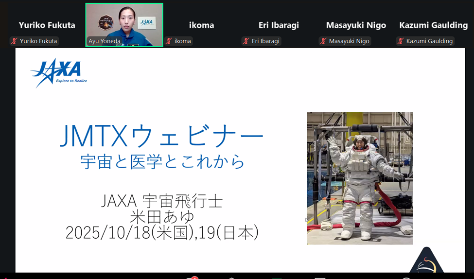 2025年10月18日、特別企画として「米田あゆJAXA宇宙飛行士と学ぶ宇宙医学入門 ~宇宙産業と医療最先端の町・ヒューストン(米国テキサス州)から~」をテーマにウェビナーを開催しましたのでご報告致します。